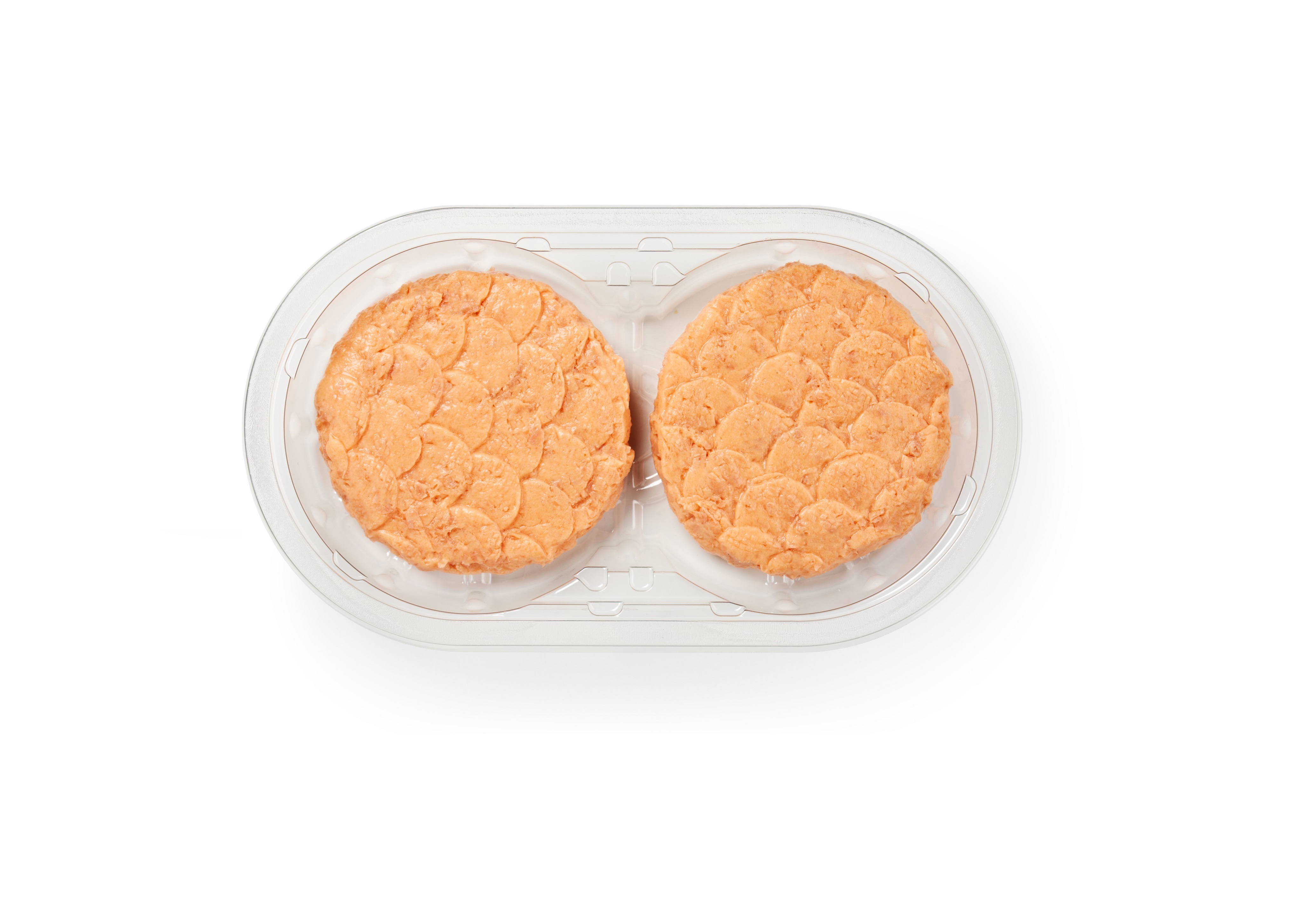 Our vegan fish flavoured burgers are predominantly based on rice and wheat. It has the look of a fish burger and are typically produced weighing 100 or 113,5 gram per patty. Product can be cooked in a frying pan.